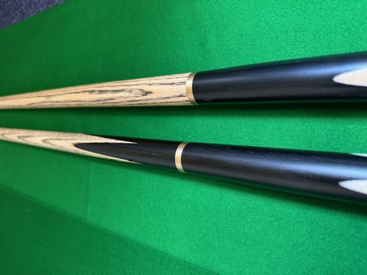The Playing cue has a small tip of 8.5mm and weights vary from Light, Med, and on the Heavy side and the cue is 57" Long. The Ash used for these are of the highest grade 5 star ash and have a stiff shaft.