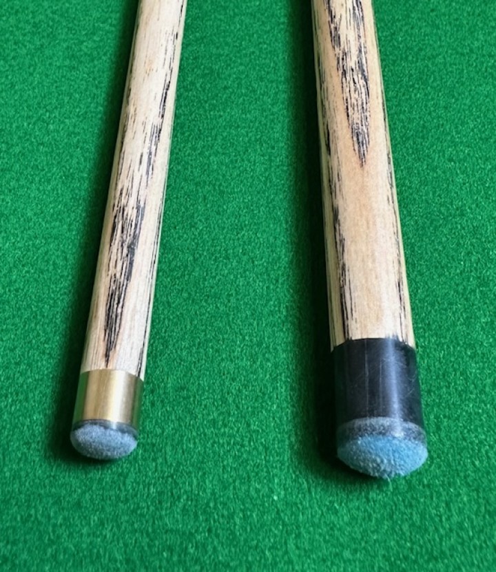 The Playing cue has a small tip of 8.5mm and weights vary from Light, Med, and on the Heavy side and the cue is 57" Long. The Ash used for these are of the highest grade 5 star ash and have a stiff shaft.