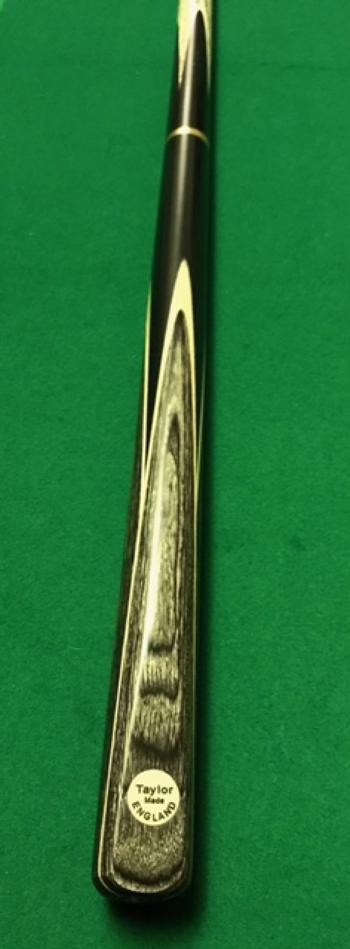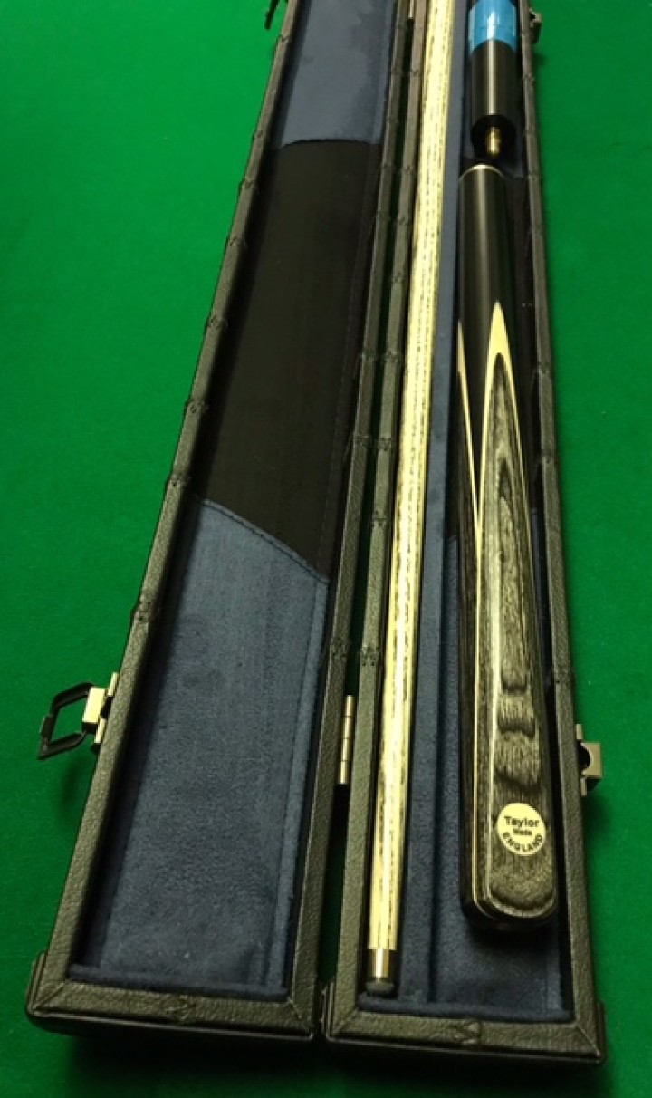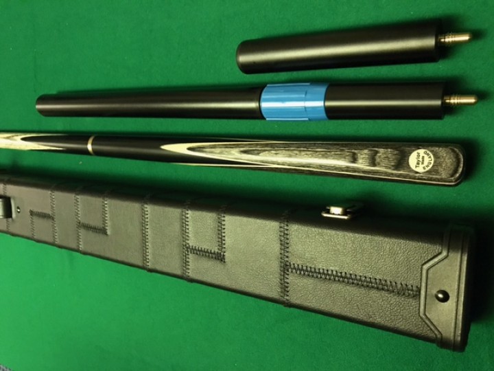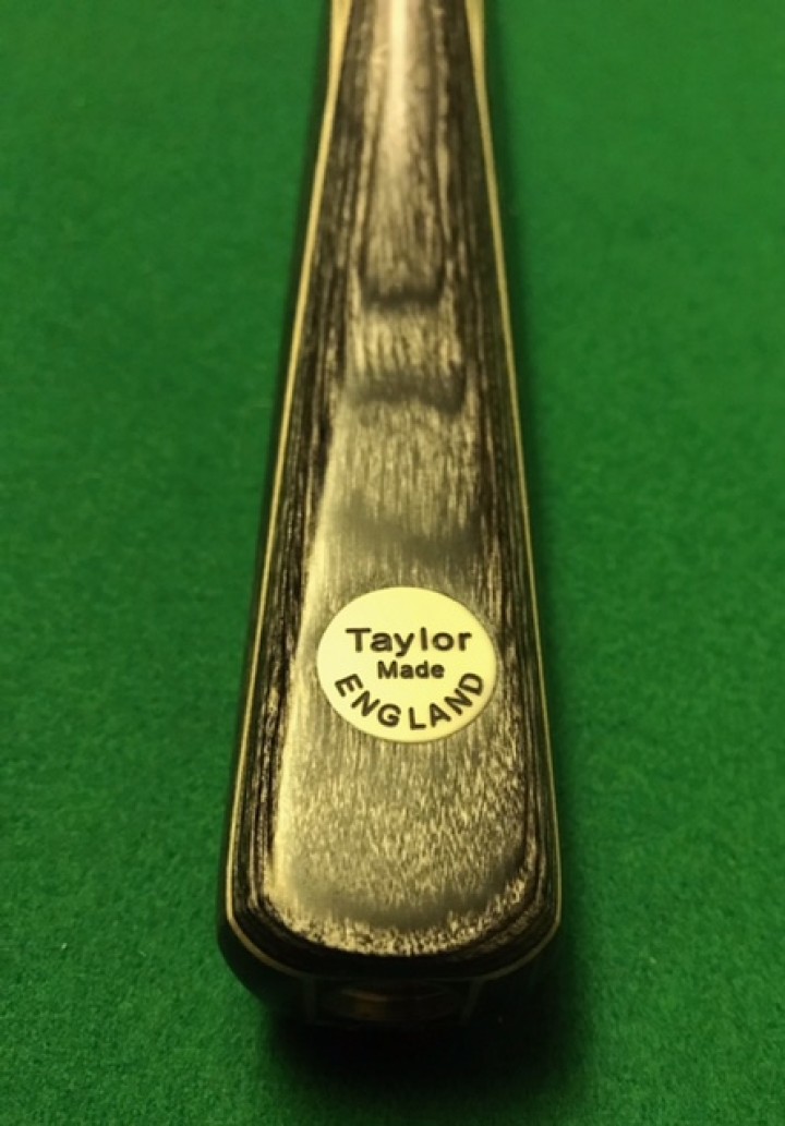 Taylor made 3/4 Ash wood shaft cue with full deep Black Ebony butt with double white sycamore Grey and white, grey white veneers complemented by a greywood beautiful finished hand spliced butt.